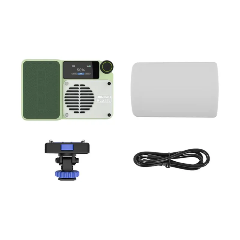 The Amaran ACE 25x is a powerful bi-color on-camera LED light designed for creators on the move. With a maximum output of 32W, it features the innovative Ace Lock quick-release mount, offering double the brightness, battery life, and charging speed compared to similar compact lights.