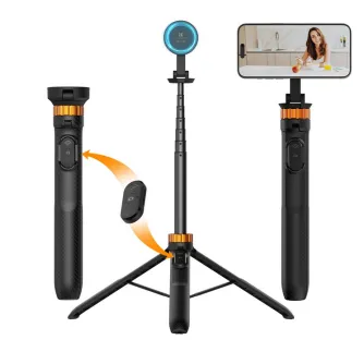 The K&F MS19 Phone Tripod offers remarkable height versatility, extending up to 162cm with 7 adjustable leg sections for optimal shooting height. Its magnetic installation design allows for quick and easy connection to your mobile device, compatible with various iPhone models from 12 mini to 15 Pro Max. The magnetic bracket provides comprehensive shooting coverage, ideal for landscapes, portraits, or sports photography.