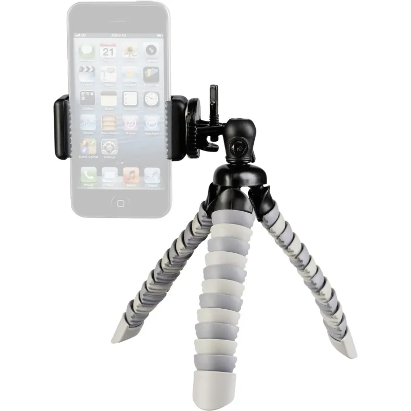 Compact, lightweight tripod for smartphones and digital cameras. Thanks to the flexibly adjustable, bendable legs, the tripod can also be adjusted to uneven floors and wrapped around poles or branches. The rubber coating on the tripod feet ensures stability everywhere.