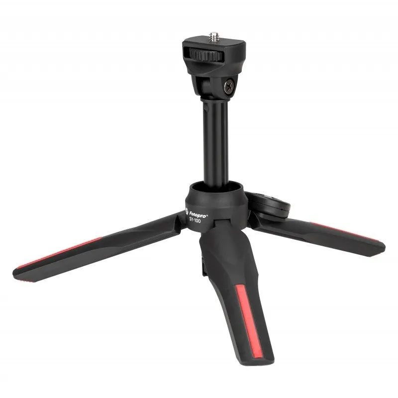 The base of the Fotopro SY-100 tripod with SJ-86 Pro mount is made up of three extendable legs. They are protected by a rubber lining that effectively protects the entire structure from accidental movement when working on smooth surfaces. Inside the tripod there is a pull-out central column. It can reach up to 37.4 cm in height. When folded, you can easily fit the tripod into almost any film backpack or bag!