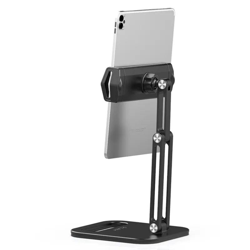 The Ulanzi VIJIM P001 360 Rotates Phone iPad Stand Holder is versatile, made of CNC ultra-precision machined aluminum alloy, reinforced elastic silicone metal clips, full metal non-slip stand, and thick EVA pad. It is sturdy, drop-proof, and stable for all tablets.