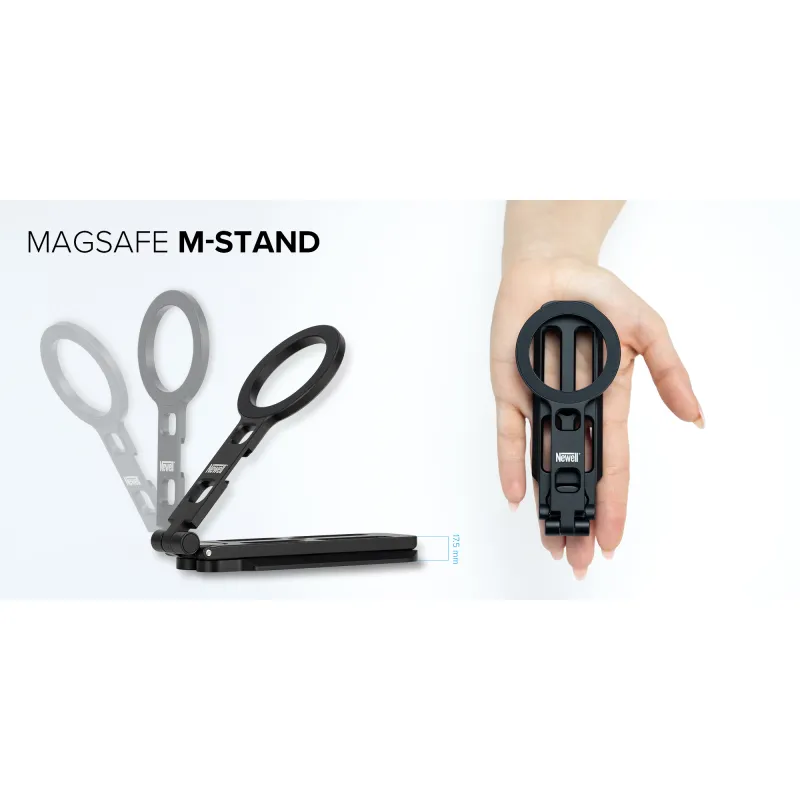 Newell MagSafe M-Stand sukurtas kaip daugiafunkcinis įrankis. Jis gali veikti kaip klasikinė mini stalo laikiklis, rankinė selfie lazda arba kompaktiškas stovas vaizdo skambučiams, transliacijoms, vaizdų peržiūrai ar filmų žiūrėjimui. Sulankstomas dizainas leidžia lengvai pereiti tarp režimų, nereikalaujant keisti priedų. Tai leidžia trikojui prisitaikyti prie įvairių scenarijų, nuo vlogų ir vaizdo konferencijų iki greitų užkulisių nuotraukų.
