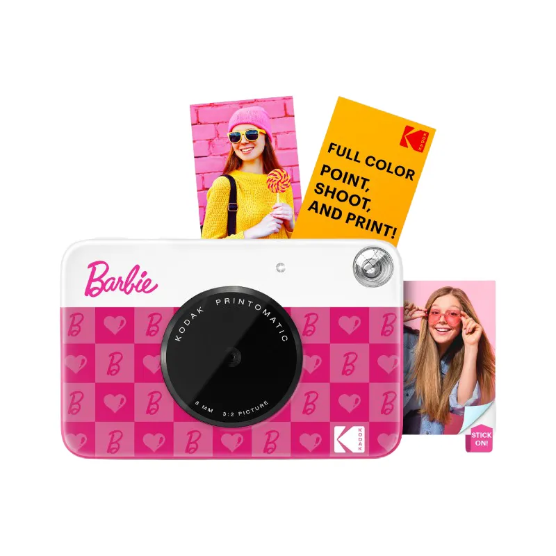 BARBIE x Kodak rožinė kamera su momentiniu spausdinimu.5 MP jutiklisAtsparumas dėmėms, vandeniui ir plyšimams2 X 3 ZINK nuotraukų popierius su lipniu pagrindu