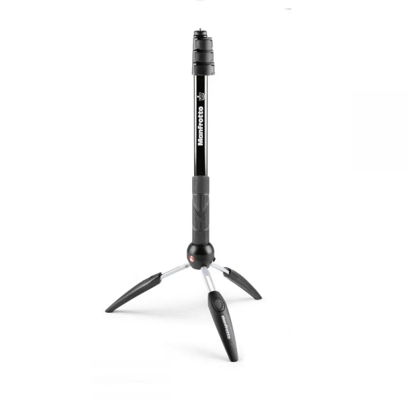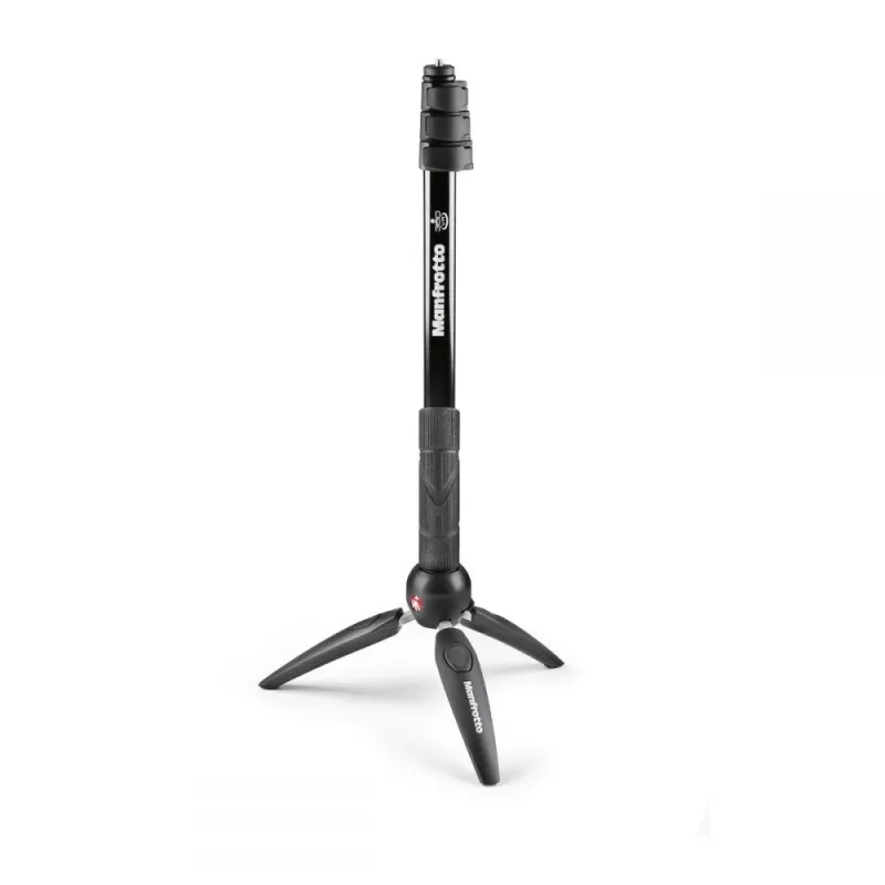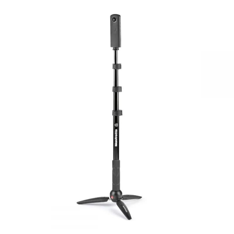The Manfrotto PIXI EVO kit is designed to support small 360° cameras. The kit consists of a specially adapted version of the PIXI EVO and a 4-section aluminium pole with a ¼ male thread to attach a camera. The pole can also be detached from the base and used as a selfie stick.