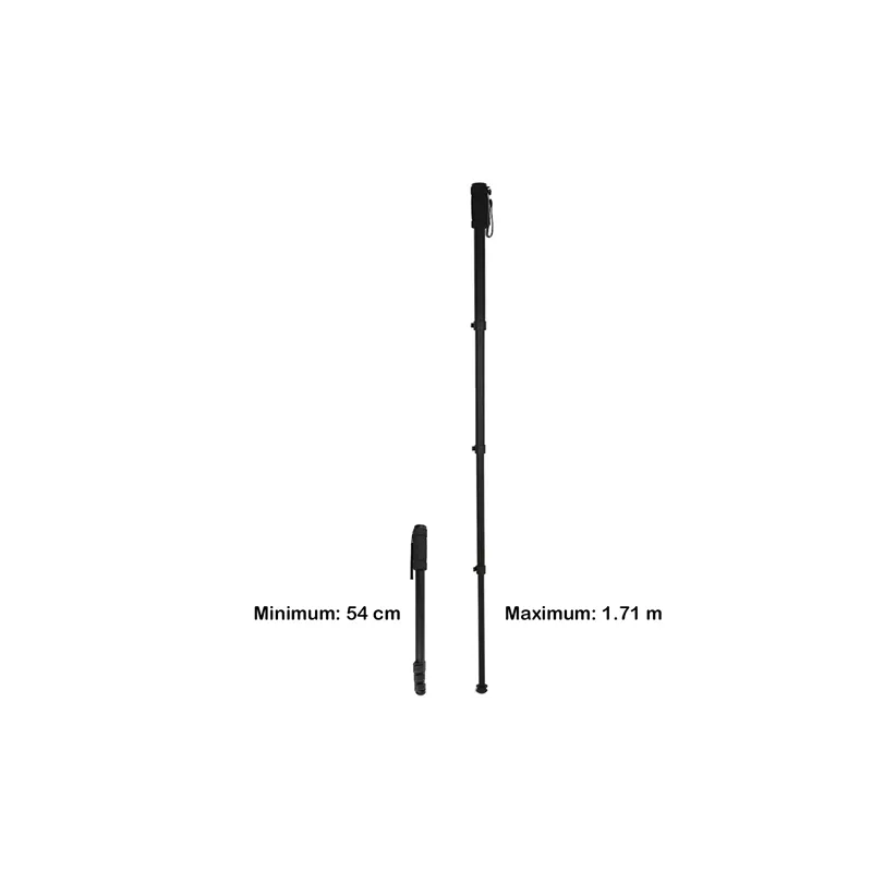 The WT-1003 by Nest is a multi-purpose, lightweight monopod with flip lock and has a maximum height of 1.71m. The one-legged tripod consists of four sections, is very compact and provides stability for your shooting or observation. The WT-1003 is equipped with 1/4" male thread and has a load capacity of up to 3kg. This means in practice that you can mount almost any photo/video camera on it, but also for example optics products (see optional accessories).
