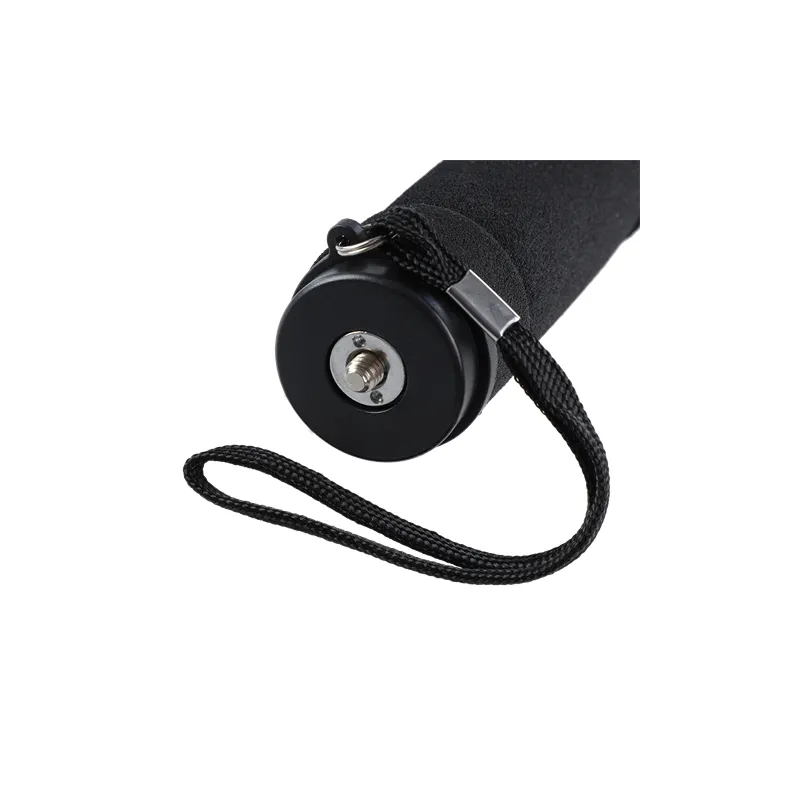 The monopod has a rubber foot and a recess that you can press into the ground about one cm, especially for unstable surfaces. The rubber foot can be turned in and out. Furthermore, the tripod is equipped with a soft foam grip for extra high comfort. At the top is a wrist strap so you can hold it safely. The monopod comes in a storage pouch with zipper and carrying strap.