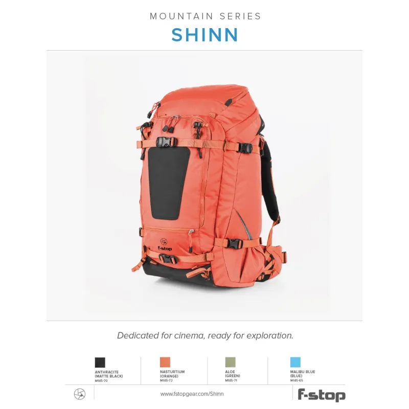An F-Stop bag would not be an F-Stop bag if it were not made of extremely sturdy and durable material. The back, hip and shoulder straps of the Shinn are made of Jersey laminated EVA material for increased wearing comfort. This comfort is increased by the adjustable stabilization straps that secure the backpack securely on your back.