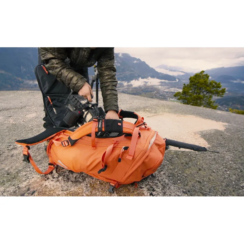 The F-Stop Shinn backpack is designed to help the professional videographer in his or her workflow. The large backpack is designed in such a way that a professional video camera such as a RED Dragon or a Blackmagic Ursa can be stored in the bag in a complete setup. This means that you can prepare your setup before departure and you do not have to do this on location. Because you have access to the main compartment of the Shinn backpack from both the top and the front, you can quickly access your equipment.