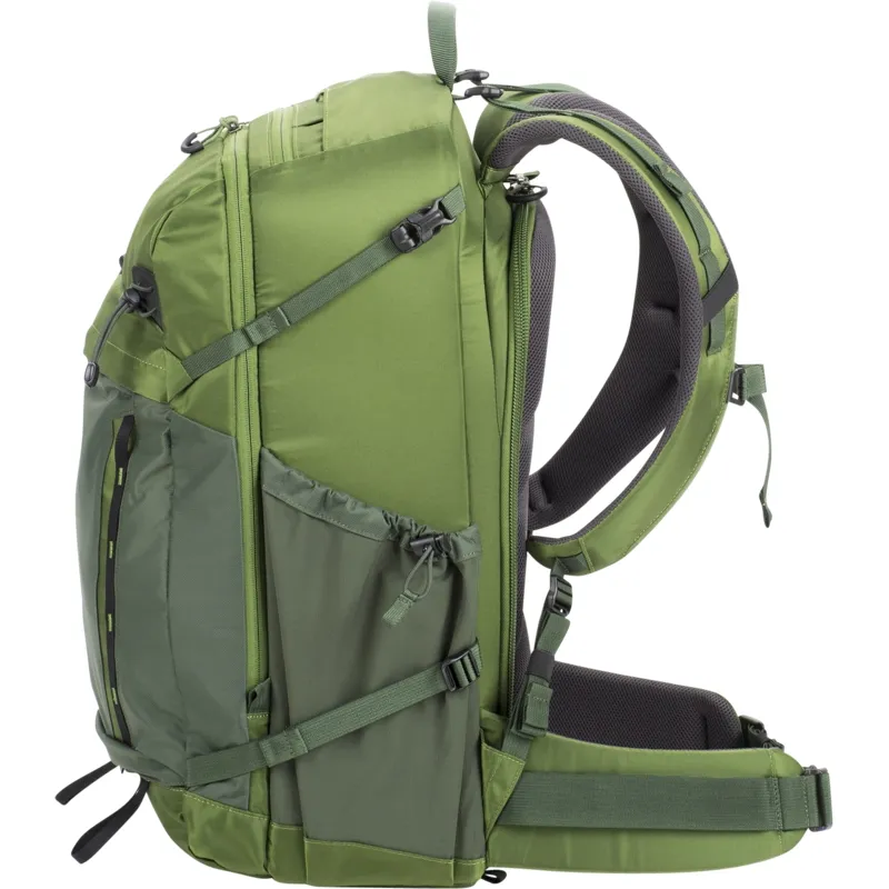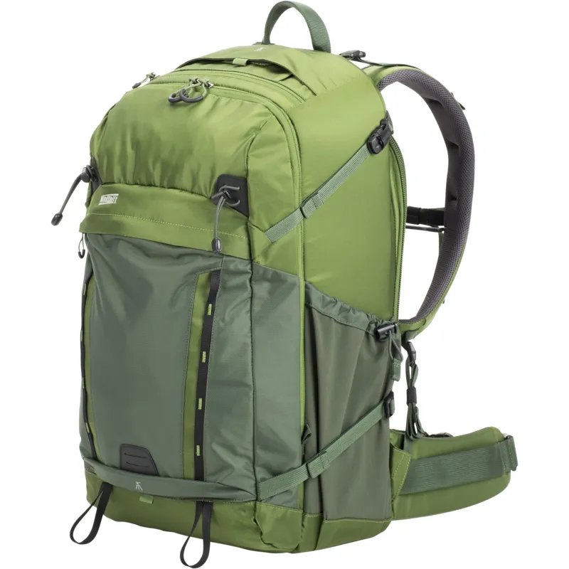 - Padded waist belt for all day comfort with webbing rail for attaching MindShift accessories