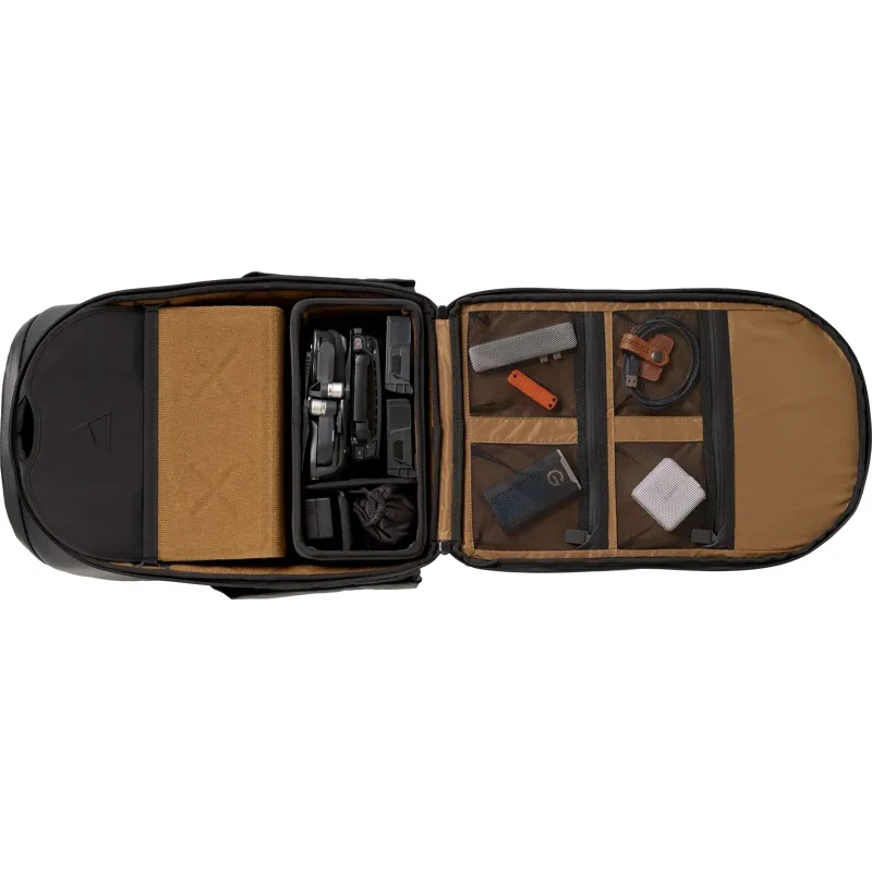 Use 1 small cube, 2 small cubes, 1 large cube or a combination of cubes to keep your systems built out by swapping from camera, to drone to everyday items seamless. We thought carefully about accessing your gear - easy top access, external laptop sleeve (fits up to a 16” Macbook Pro), and full back access. Use the internal Articulating Ladder system to split up your gear or remove the ladder completely. The Ladder system also allows you to expand the top area of the bag. On the inside of the back door, There are 4 internal zipper mesh pockets for organization of smaller items.
