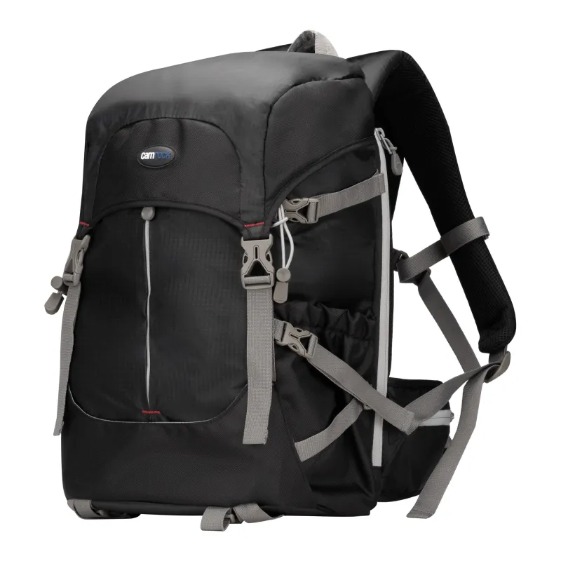 The Camrock Pro Travel Mate 300 L has plenty of extra pockets, straps and webbing. The side, outside pocket can hold a large water bottle, camera tripod or trekking poles, the bottom pocket has straps to hold a sleeping bag and the top pocket can hold a sleeping pad.