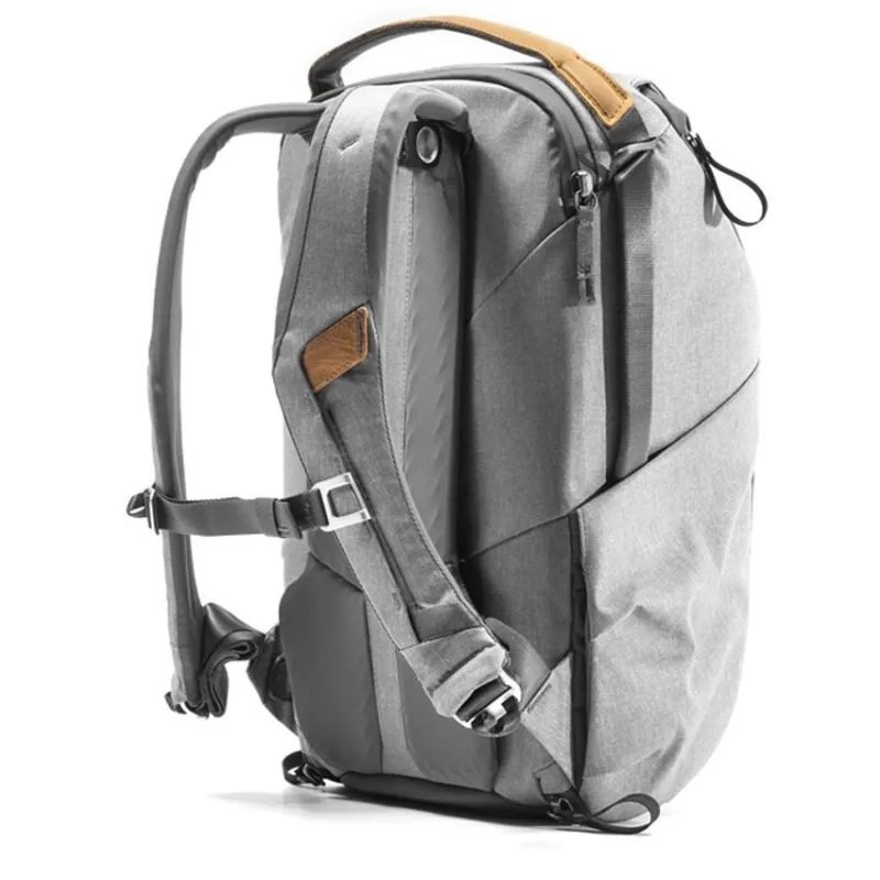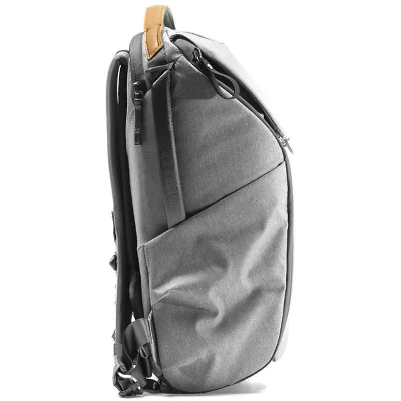 This 20L, ash-colored Everyday Backpack v2 from Peak Design is a versatile bag that is designed for photographers, multimedia creators, or anyone whose carrying requirements can benefit from its compressible, size-adjustable design that minimizes bulk or can be expanded as needed. Multiple magnetic latches for its top flap allow this backpack to vary from 18.3" to 22.3" in height, while inside, three dividers allow items to be stacked within the main compartment. The dividers also feature foldout surfaces that can be configured to cushion and hold items against either of the Everyday Backpack v2's zippered side openings. Since the side openings are positioned to face the wearer when the bag is rotated from one's back to front with either side facing upward, the dividers provide the ability to ensure which items can be most quickly accessed from the bag's sides.