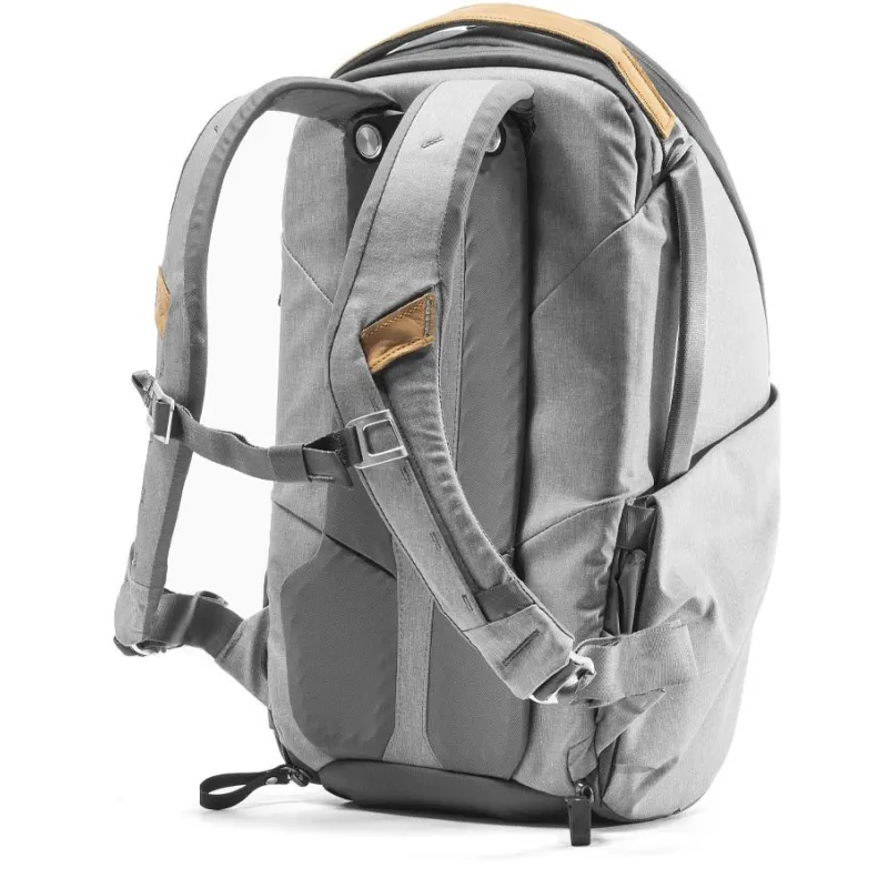 This 20L, ash-colored Everyday Backpack Zip from Peak Design is a versatile, light-duty bag for photographers or multimedia creators, and can serve as a stylish way to carry any personal items that can be placed within it. Complete access to the main compartment is enabled by a zippered, clamshell opening. The zipper travels up both sides of the Everyday Backpack Zip and angles toward the wearer at the top of the bag. Even when partially opened, this angled zipper allows the main compartment to be easily reached whether through the top, or along either side of the Everyday Backpack Zip. Two adjustable dividers allow items to be stacked within the main compartment. The dividers feature foldout surfaces that can be configured to cushion and hold items against the sides of the bag, providing the ability to ensure which items can be most quickly accessed when the Everyday Backpack Zip is rotated from one's back to front with either side facing upward.
