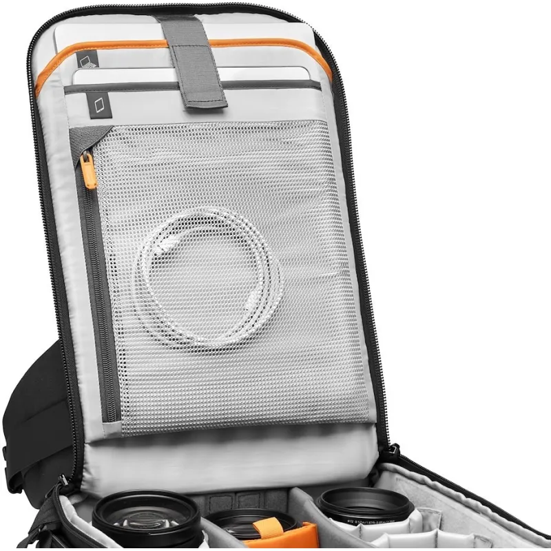 Enhanced 10mm YKK® zippers give a smoother path while front molded EVA bumpers deliver increased security for valuable equipment when the bag is set down. All Weather AW Cover™ protects gear from rain, snow, dust and sand. Load in your DSLR or mirrorless camera with portrait grip with lenses or compact drone, plus compact tripod, 15" laptop and 10" tablet. Front storage panel & removable, padded accessory pouch included.