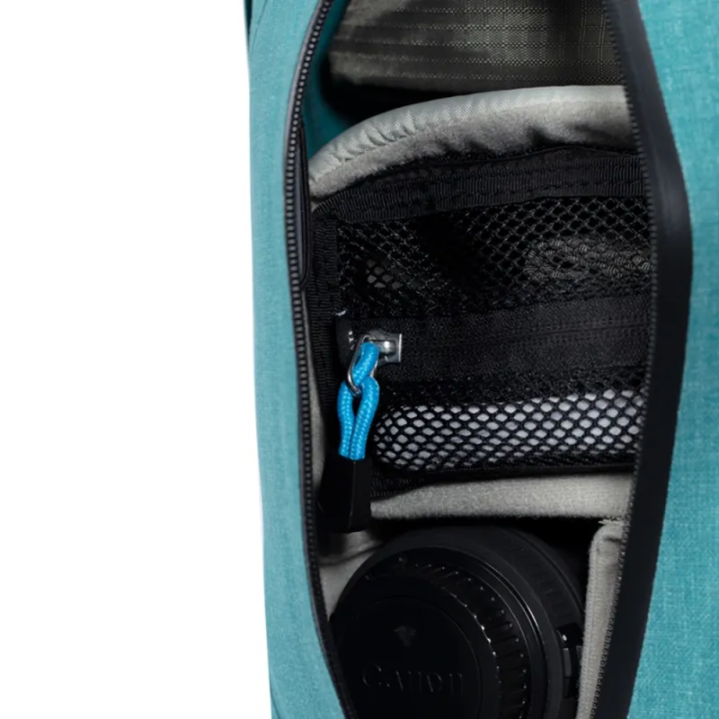 F-Stop DYOTA 20 North Sea (teal) With the F-Stop Dyota 20 you have a stylish, sturdy sling bag in your hands. You can also use this backpack for daily use thanks to the removable camera insert. You have space for a system or DSLR, 3 to 4 lenses, a flash and a 15-inch tablet or laptop.