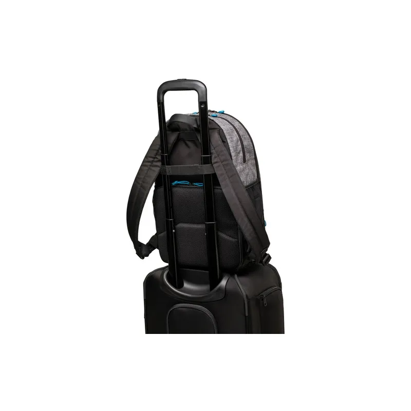 The bag is carried via the backpack straps or the top handle, and to get through the airport quickly you can conveniently slide the rear trolley strap over your luggage handle. A decorative laser-engraved aluminum badge on the front allows you to easily identify the bag from a distance.