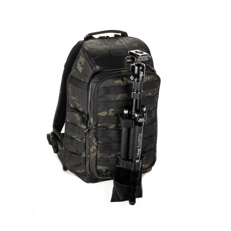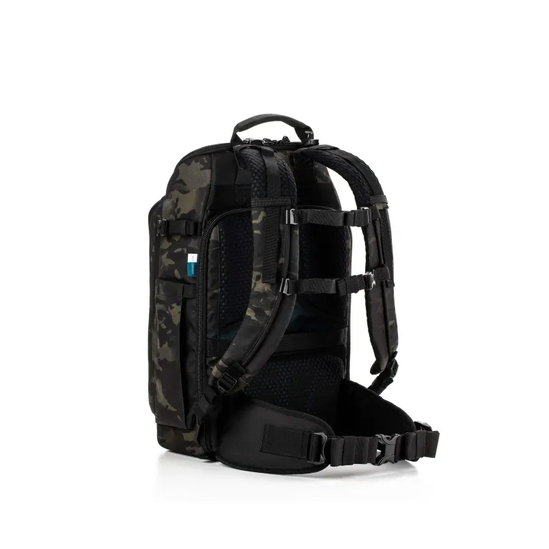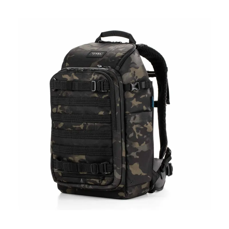 Tenba’s tactical Axis bags were inspired by the ultra-durable bags we’ve made for the military throughout our 40+ year history. The 20L backpack will fit 1-2 Mirrorless, DSLR or Cine cameras with 5-7 lenses, up to 300mm 2.8, plus a laptop up to 14 inches (35 cm). It also fits a DJI Mavic and other compact drones. MOLLE webbing allows limitless expandability with Tenba Tools, such as Lens Capsules, Battery Pouches and Memory Card Wallets, as well as a multitude of military-standard pouches and accessories. Tenba's Airflow harness and auto-adjusting Pivot-Fit Straps allow the pack to comfortably fit users of all sizes. This backpack features 3 points of camera access (top, side and rear), and it's the first camera bag to include a hidden pocket compatible with an Apple AirTag or Tile Bluetooth Tracker.