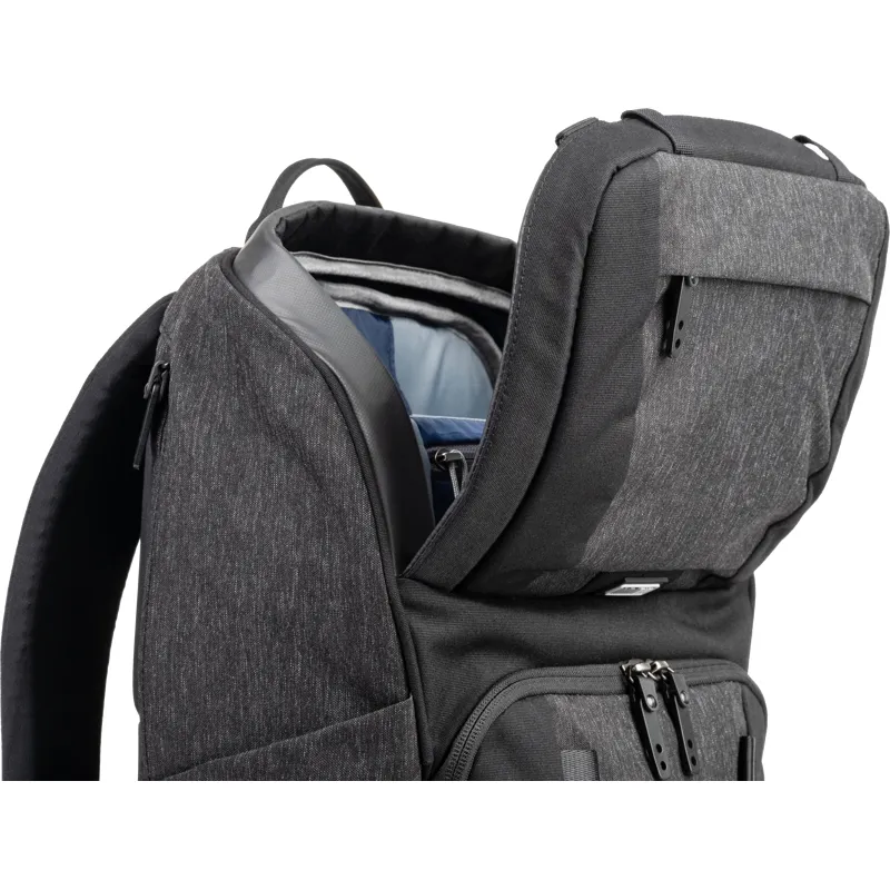 SpeedTop mugursomu sērija nodrošina ātru piekļuvi nākamajam līmenim! Plašajā augšējā nodalījumā ir magnētiskais vāks, ko viegli atvērt ar vienu roku, bet droši aizvērt ar vienu ātru pagriezienu. Augšējā nodalījuma iekšpusē ir rāvējslēdzēja aizdares kabatas, kurās var droši un organizēti glabāt svarīgākās lietas, tostarp 16 collu klēpjdatoru un 10 collu planšetdatoru vai dokumentus. Lielajā apakšējā nodalījumā ir piekļuve no priekšpuses un sāniem, kas ļauj aizsniegt lielgabarīta priekšmetus, piemēram, jaku vai kameras kuba ieliktni (iegādājams atsevišķi), nenoņemot mugursomu. Pārveidojama starpsiena starp augšējo un apakšējo nodalījumu veido vienu lielu nepārtrauktu telpu.