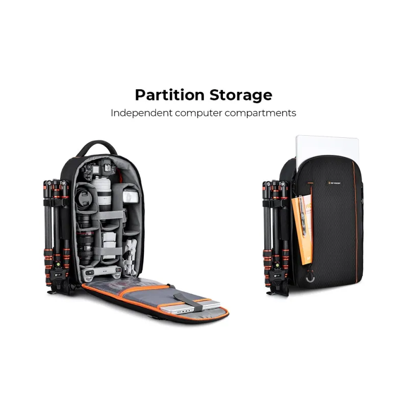 This K&F Concept KF13.140 15L Beta DSLR Camera Backpack is a high-quality photo backpack/rucksack with a large main opening that offers multiple storage options for your DSLR cameras, lenses, tripod, flashes, 15.6" laptop and other accessories.