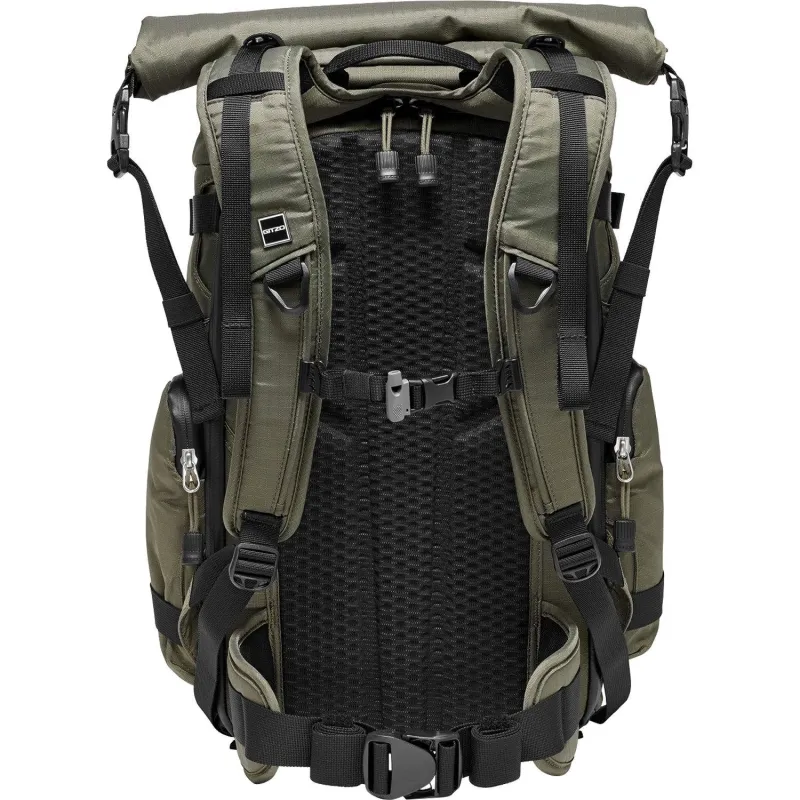 The Adventury backpack gives you rear access to the main compartment via a full-length zipper, so you can easily store or retrieve your gear, and offers an expandable roll top so you can pack personal items without messing up your workflow. On each side, large zippered pockets expand in width for extra space and can hold a water bottle or even a small tripod. Tripods and monopods can also be carried with the multi-link straps in the back, or the dual straps at the bottom of the bag. Additionally, other exterior pockets and accessory loops can be used to transport small items.