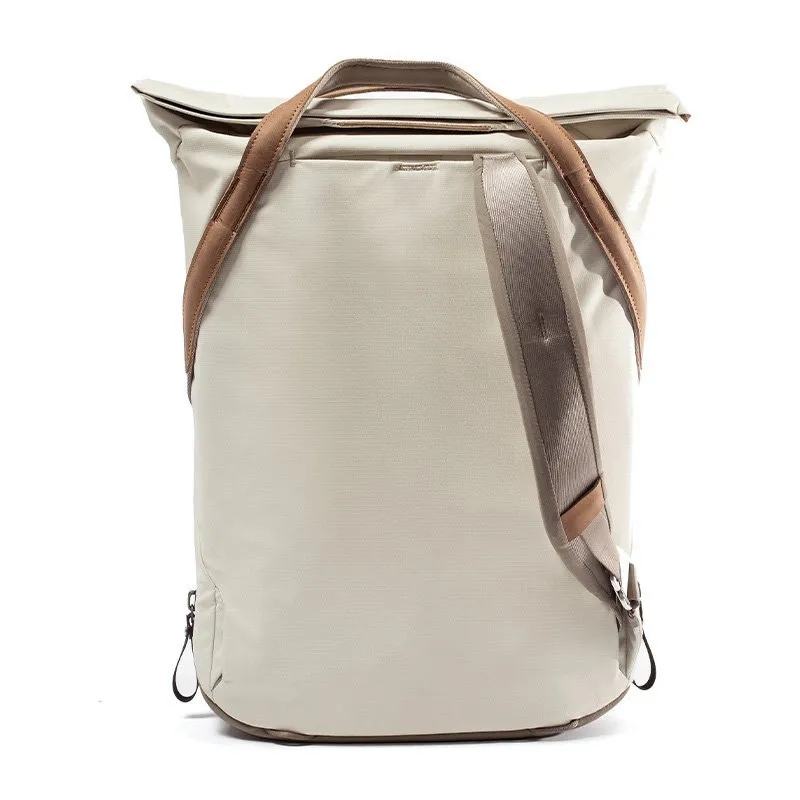 The clean look of a tote with the active carry convenience of a backpack, the Everyday Totepack is ideal for on-the-go everyday and photo carry. Padded backpack straps quickly stow, leaving you with robust padded hand carry straps. An extra-wide top access point seals via magnetic clasp or weatherproof zip. Dual zip access points on either side for grabbing your camera, water bottle, or other oft-used items. Inside, FlexFold dividers can mount horizontally or vertically to give customized, protective storage. Stretchy internal pockets for small items, plus dedicated laptop (15”) and tablet sleeves. Outside, a 100% recycled 400D weatherproof shell keeps everything safe. Carry even more with 2 stowable external carry cinch straps.