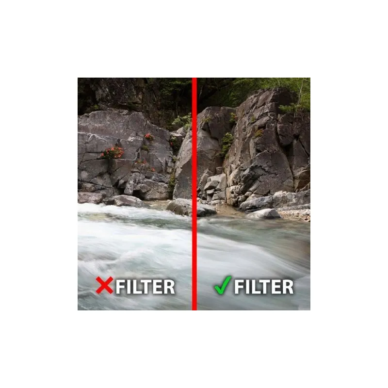 If there is too much light or you want to use a different aperture with the same shutter speed, for example, you can use a gray filter. The light intensity is reduced by the filter. With the Marumi DHG ND32 filter, you can slow down a certain aperture value by 5 stops. You do not need to pinch the aperture further if you want a slower shutter speed. This slower shutter speed enables you to capture a movement in an image and prevents the moving image from being ''ghosted''. A good example is a picture of running water as shown in the pictures.