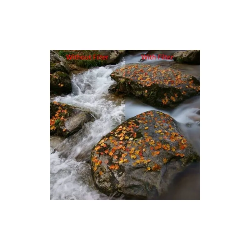 ;When there is too much light or for example you want to, use a different aperture with the same shutter speed you can use a gray filter. The light intensity is reduced by this filter. With this Marumi DHG Super ND500 filter you can lower a certain aperture value with 9-stops. So a slower shutter speed with constant aperture. You do not have to squeeze the aperture if you want a slower shutter speed. Because of this slower shutter speed you are able to capture movement in a photo and you prevent the moving image from being duplicated '' ghosting ''. A good example is a photograph of running water as shown in the pictures.