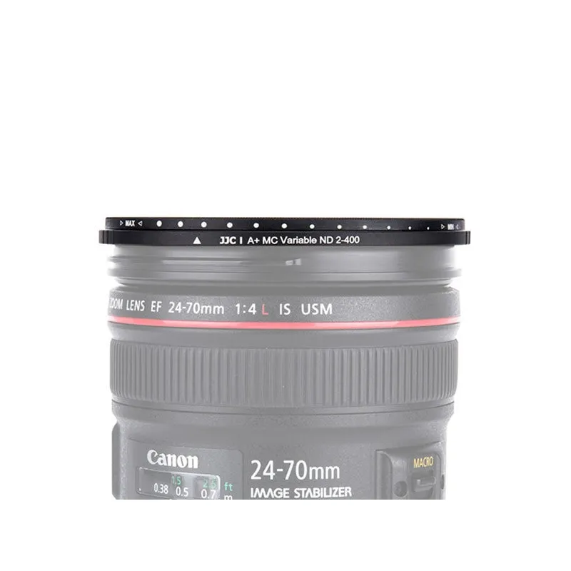 The JJC F-NDV67 Variable ND Filter is a grey scale filter with a variable neutral density from ND2 to ND400. By turning the filter you can vary the amount of light that passes from 1 stop to 9 stops without affecting the original colours. This gives you very precise control over exposure. This gray filter is therefore very suitable for taking dynamic photos of waterfalls, streams, waves, etc.