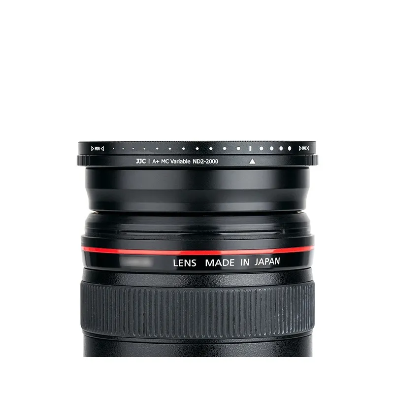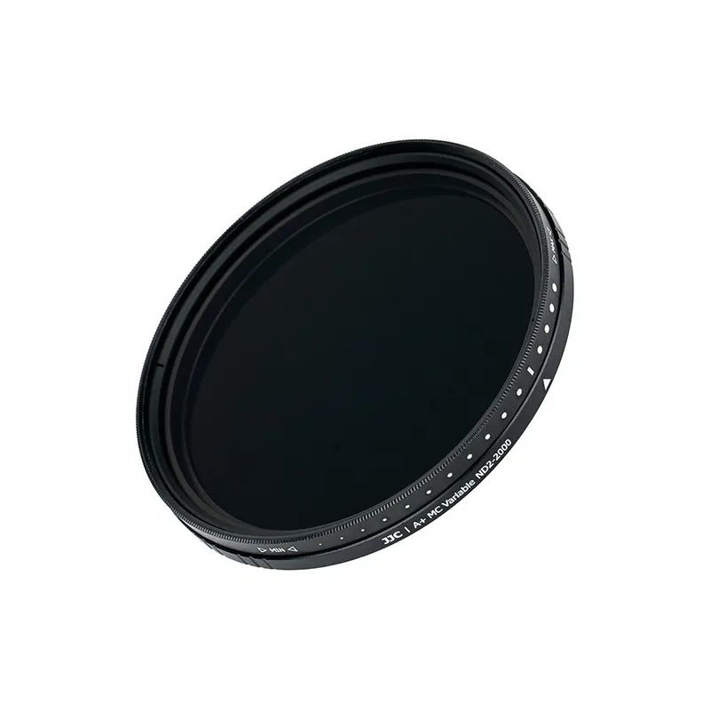 JJC 55mm ND2-ND2000 Variable Neutral Density Filter The JJC F-ND2K series ND2-ND2000 Variable Neutral Density Filter is specially designed for shooting dynamic scenes, such as waterfalls, streams, waves, etc. The filter is constructed from HD optical glass and has 9-layer coating on each surface of the glass. The multiple coatings makes the filter anti-scratch, anti-fingerprints, anti-static, oil and water-resistant. Additionally, it reduces the amount of light reaching the film without affecting the color to achieve the desired effect. The frame is made of high quality aluminium alloy and the thickness is about 9mm. The neutral density can be adjusted steplessly from ND2 to ND2000 by rotating the upper part of the frame, which effectively solves the problem of carrying multi ND filters. Besides that, the filter comes with a delicate moistureproof filter case(except F-ND2K82 with a PP box) to protect your filter and for easy carrying. The JJC F-ND2K series ND2-ND2000 Variable Neutral Density Filter has different thread sizes available from 49-82mm. It will become a good partner for your landscape photography.