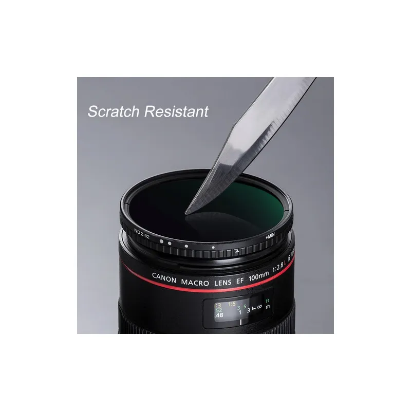 Capture creative shots with the K&F Concept Nano-X ND2-ND32 Variable ND Filter. This 43mm filter offers 1-5 stops of adjustable light reduction for stunning effects. Crafted from Japanese optical glass with a green multicoating, it maintains color accuracy. Plus, its waterproof and scratch-resistant coating ensures durability. Perfect for dynamic photography and videography.