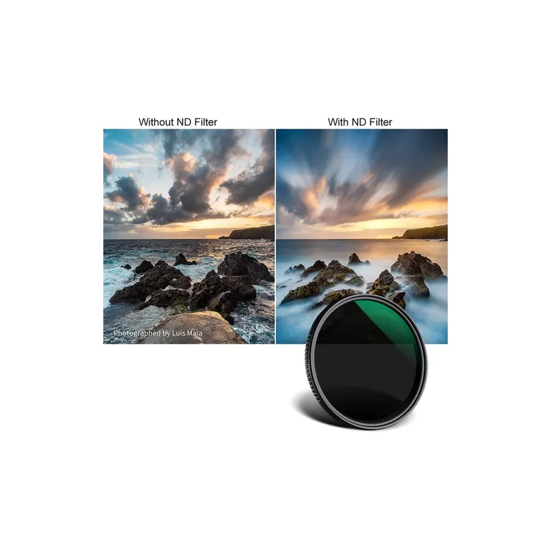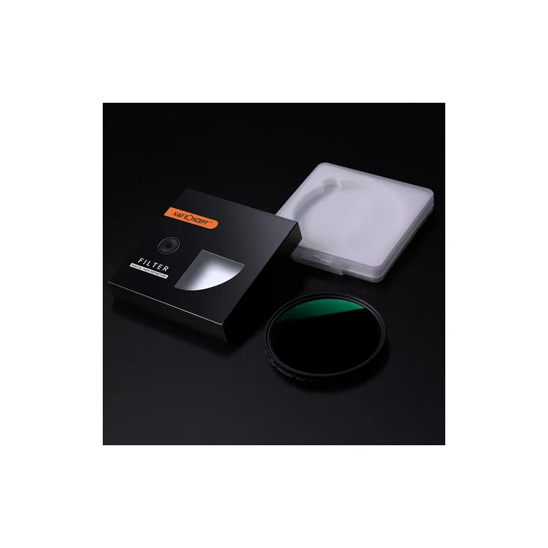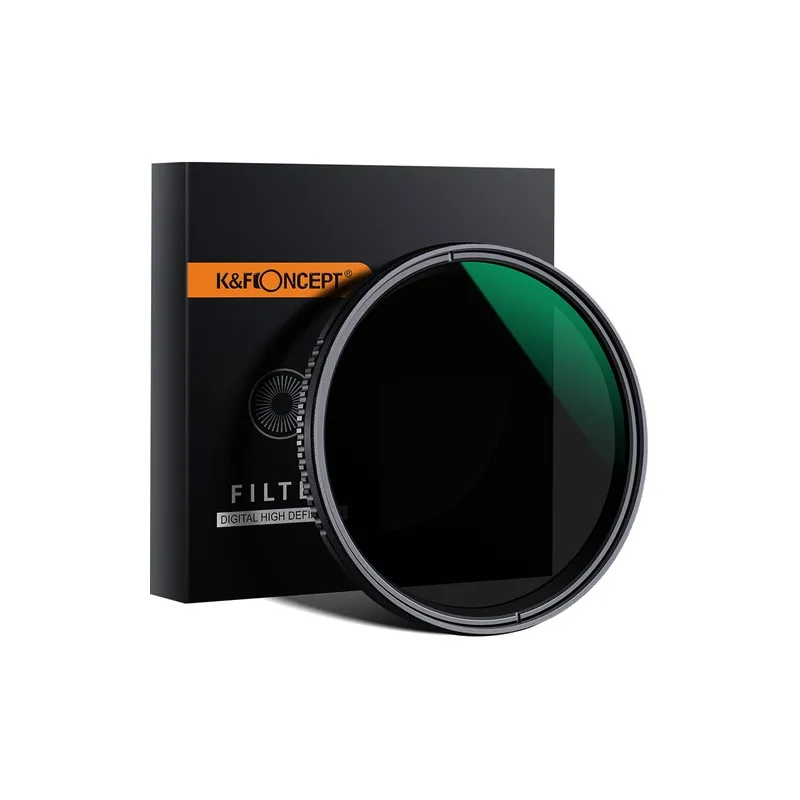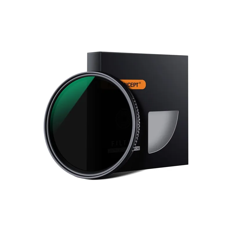 The KF Concept ND8-ND2000 Nano-X Variable ND Filter is a versatile 58mm filter offering 3 to 11-stop light reduction. Ideal for photographers and videographers, its made from Japanese AGC optical glass, features a 24-layer multicoating, and is encased in a slim 7.5mm aircraft-grade aluminum alloy ring. This filter allows for creative control over shutter speed and aperture, making it perfect for capturing motion blur and managing depth of field in various lighting conditions. Its multi-resistant, waterproof coating ensures top-notch image quality and easy maintenance.