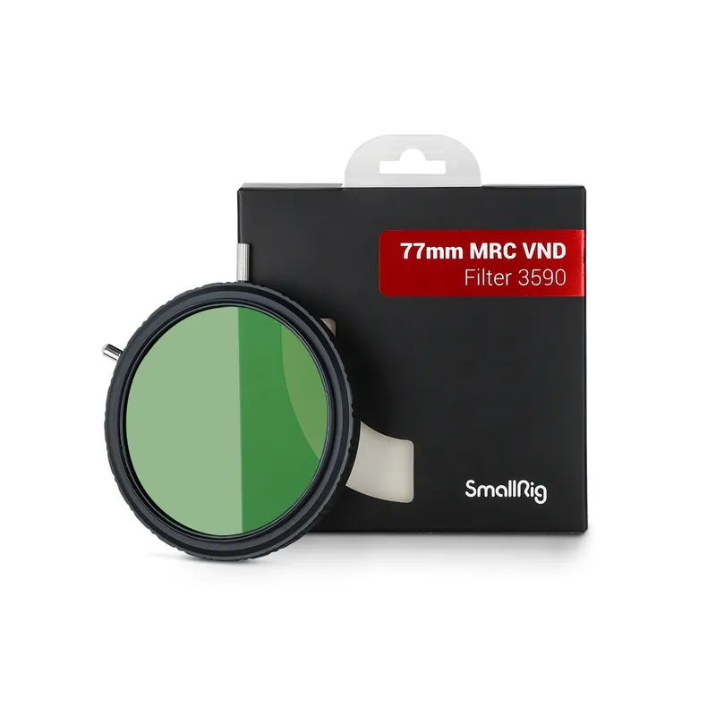 SmallRig 77mm MRC VND Filter 3590 features adjustable light extinction stops with fluid damping and thus fits all kinds of complex lighting conditions as needed. Made from high clarity, high transmission B270 optical glass, the filter is precisely ground and polished for use with lenses of various focal length without compromising image sharpness. It is coated on both sides with 18 films to increase light transmission and reduce reflections. These coatings are mildewproof and water-resistant, toughened to prevent stain and easy to clean and care for, making for a part of everyone's gear bag. The filter tray, made from aircraft-grade aluminium alloy, is CNC machined, laser engraved and anodized for long-term using without wear and tear. The filter is compatible with lenses of 77mm in diameter.