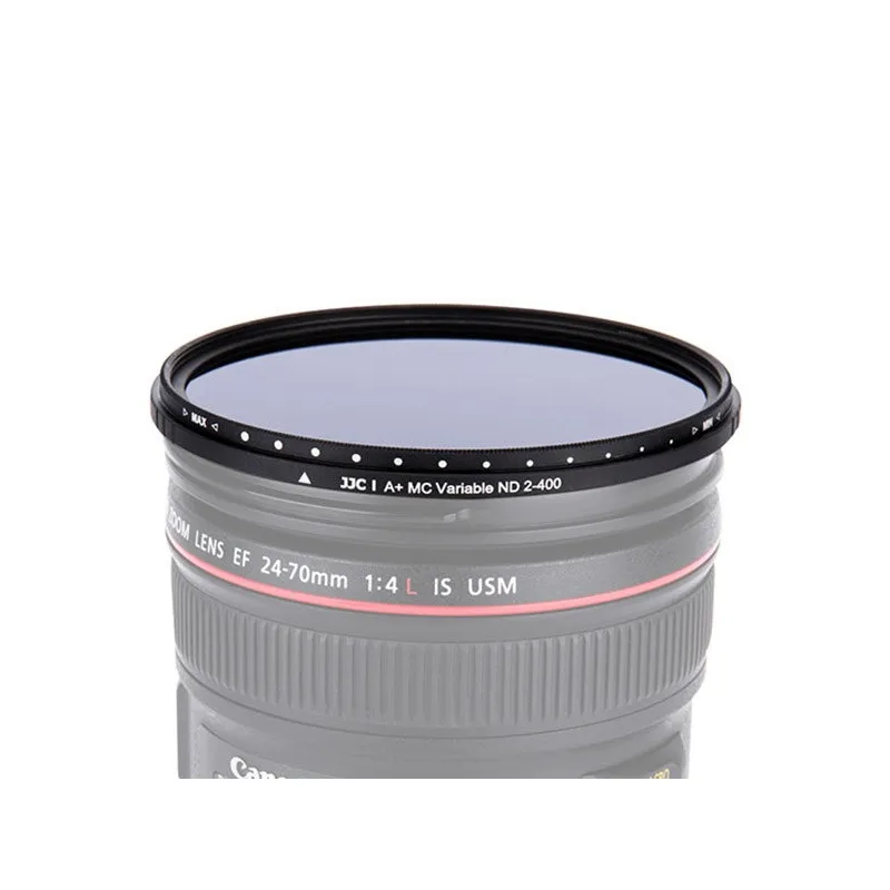 The JJC F NDV82 Variable ND Filter is a grey scale filter with a variable neutral density from ND2 to ND400. By turning the filter you can vary the amount of light that passes from 1 stop to 9 stops without affecting the original colours. This gives you very precise control over exposure. This gray filter is therefore very suitable for taking dynamic photos of waterfalls, streams, waves, etc.