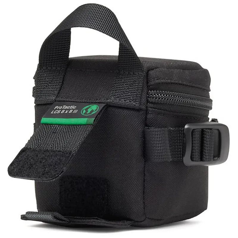 Introducing the ProTactic LCS 8 x 8 III, designed for the working photographer shooting events and other jobs all day, largely outdoors. This lens case is sized with an internal diameter of 8 cm and an internal height of 8 cm, perfect for smaller lenses. The dual-density foam provides a snug fit with a harder exterior for bumps and a softer interior for a secure hold. The compression strap allows for a customized fit, ensuring your lens stays in place.