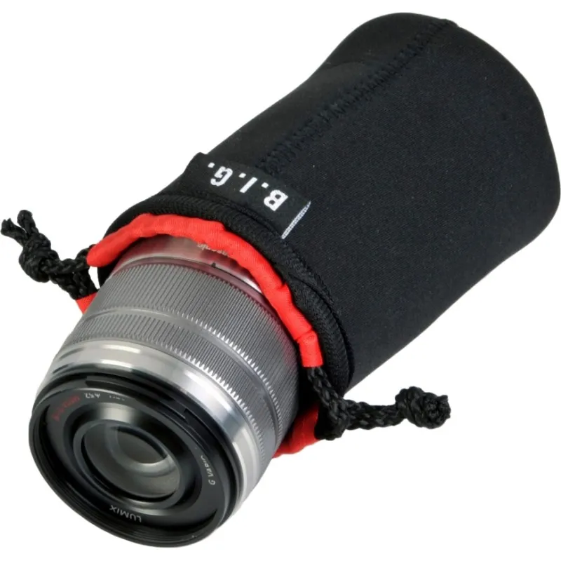 Protect your valuable lenses with this practical neoprene bag from BIG. It's a handy addition to your camera bag and keeps your gear safe from bumping together and scrathes. A simple drawstring keeps the lens safely in the bag. Suitable for all ø7 × 7 cm lenses.