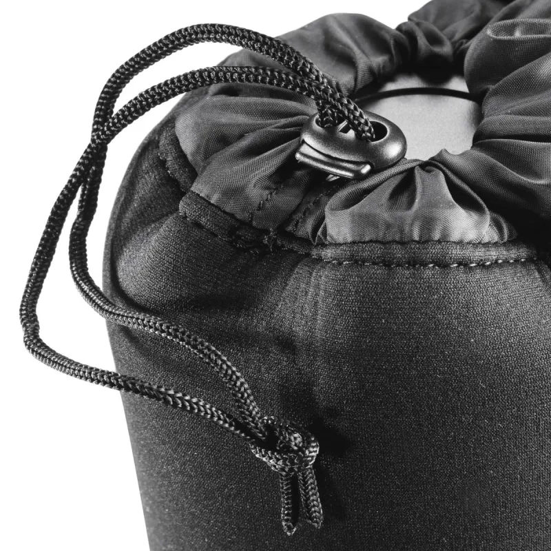 The lens pouch NEO offers reliable protection for your lens. It is made from high-quality and water-repellent neoprene. The material is very lightweight, soft and elastic. At the same time it is very sturdy and durable. The pouch can be closed easily with a drawstring.