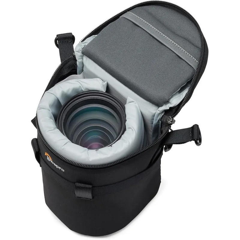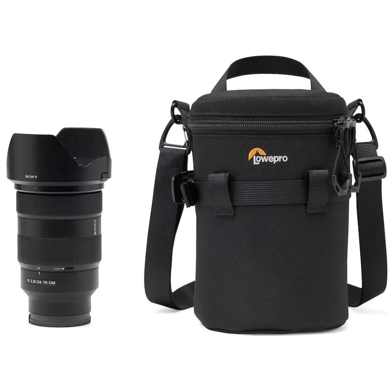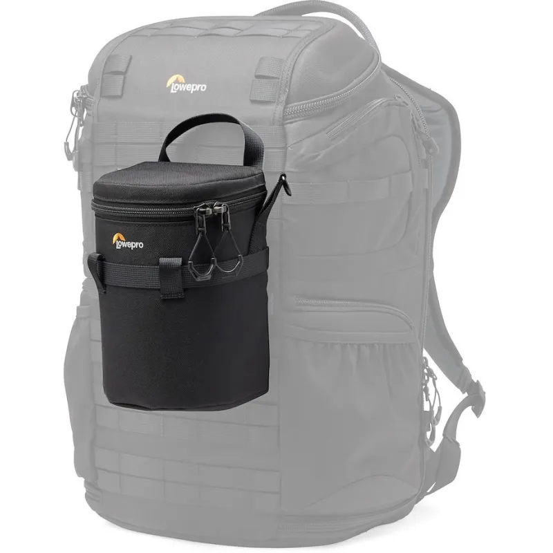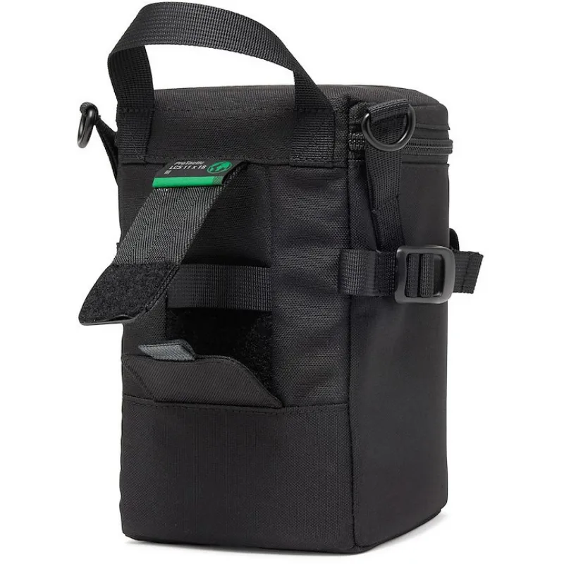 This lens case accommodates lenses up to 11cm in diameter and 18cm long. It can be used independently or attached to any SlipLock compatible bag or belt.