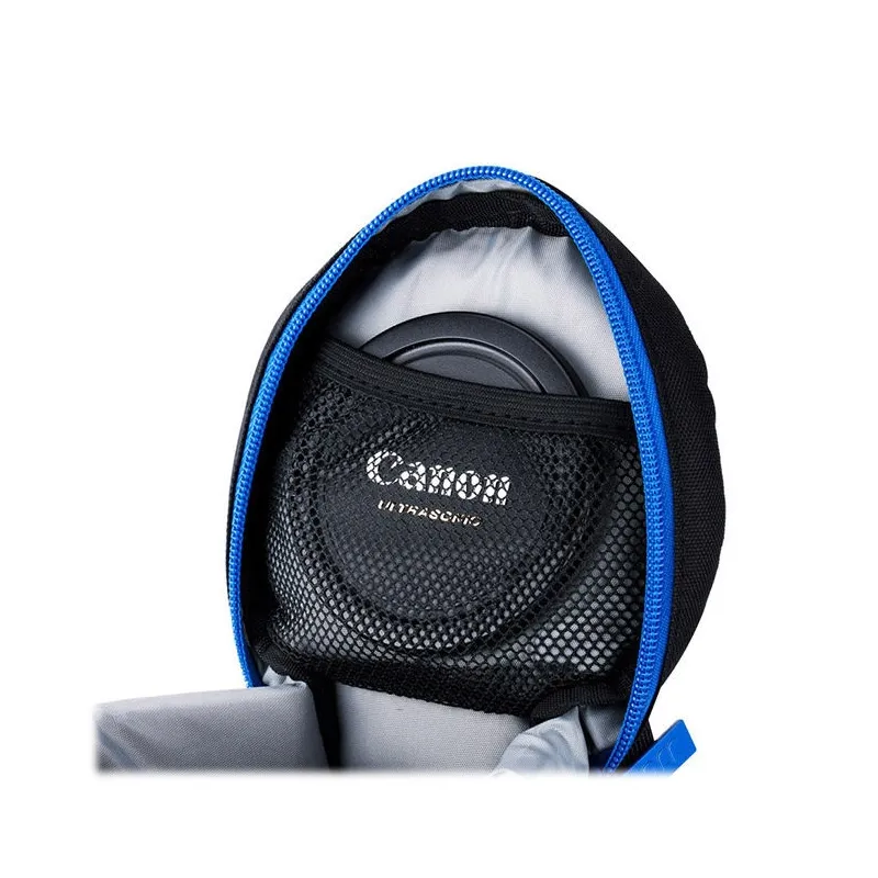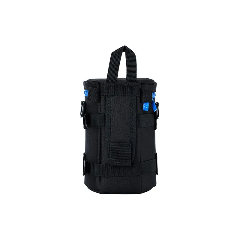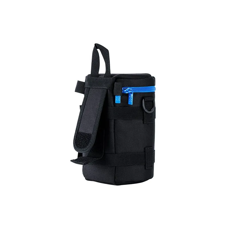 JJC Deluxe Lens Pouch is designed to carry a typical SLR lens. This pouch features heavy-duty polyester construction with a foam cushion interior. It provides great protection and shock absorption for your lens. Besides, its exterior material is water-resistant, which can protect your lens from rain and moisture. It has deep blue two way zipper with a mesh accessory pocket inside the lid. The two zipper sliders are designed with small loops, thus you can lock them together with a small lock for security. You can put the small accessory, such as lens cap or remote controller, into the inside pocket. Features 4 carrying options: 2 D-rings with a strap to be used as a shoulder strap, 2 webbed eyelet loops for a shoulder strap, rear double touch belt loop for use on waist belt and a grab handle on the top for convenience. In addition, the narrowed rear double touch belt loop also fits Lowepro belt. The deep blue zipper coordinate with the JJC logo, which makes the pouch fashionable. This series of lens pouches is available in 7 sizes to fit a wide variety of lenses.