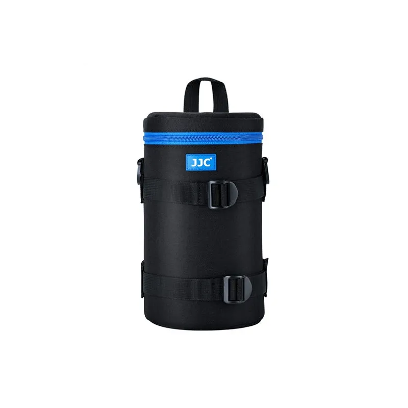 JJC Deluxe objektyvo krepšys sukurtas nešti standartinį SLR objektyvą. Šis krepšys pagamintas iš tvirto poliesterio, turinčio putų paminkštinimą viduje, kuris suteikia puikią apsaugą ir smūgių sugėrimą. Išorinis audinys yra atsparus vandeniui, apsaugantis objektyvą nuo lietaus ir drėgmės. Jame yra gilus mėlynas dvipusis užtrauktukas su tinkline kišene dangtelio viduje. Dviejų užtrauktukų slankikliai turi mažus kilpelius, todėl juos galima užrakinti kartu su mažu užraktu. Mažus priedus, tokius kaip objektyvo dangtelis ar nuotolinio valdymo pultas, galima dėti į vidinę kišenę. Krepšys siūlo 4 nešiojimo galimybes: 2 D-formos žiedai su dirželiu, 2 tinkliniai kilpeliai peties dirželiui, užpakalinis dvigubas prispaudimo dirželis juosmeniui ir rankena viršuje patogiam nešimui. Be to, siauras užpakalinis dvigubas prispaudimo dirželis taip pat tinka Lowepro diržui. Gilus mėlynas užtrauktukas derinamas su JJC logotipu, todėl krepšys atrodo madingai. Ši objektyvo krepšių serija yra prieinama 7 dydžiuose, kad tilptų įvairūs objektyvai.