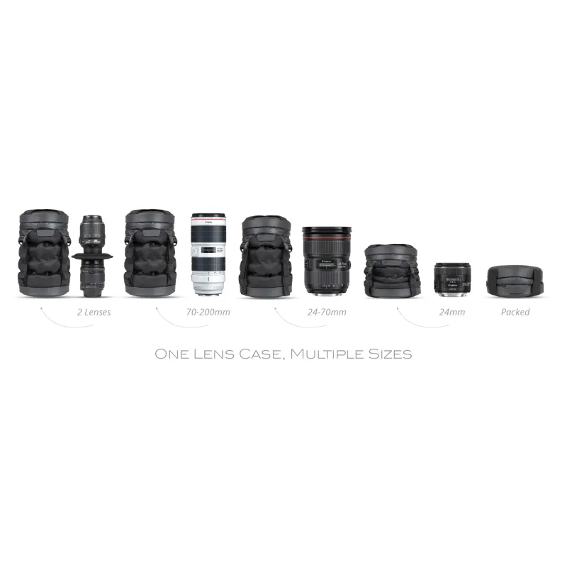 Traditional lens cases are often bulky and only suitable for one type of lens. Wandrd has developed a space-saving and protective solution for this with the Wandrd Inflatable Lens Case. This inflatable lens bag fits almost any size lens from pancake size up to 70-200mm. The Wandrd Inflatable Lens Case is so handy that you'll never want to go out without it.