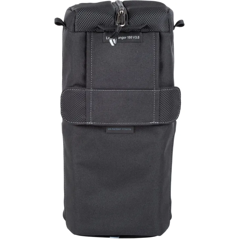 Modular pouch accommodates a 150–600mm f/5–6.3 lens with hood reversed.