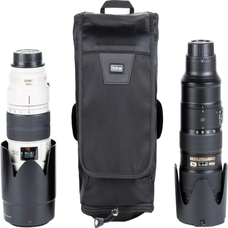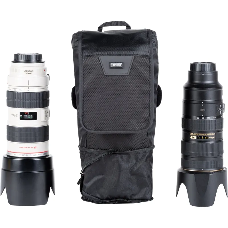 Lightweight, compressible pouch accommodates a 70–200mm f/2.8 lens with hood reversed or in shooting position when popped down