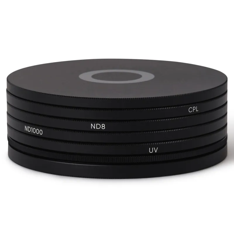 The ND8 Filter Plus+ blocks a fixed 3 f stops of light allowing longer shutter speeds for long exposure, motion blur effects in low light, and cinematographers can use it to achieve more cinematic effects. The ND1000 Filter Plus+ blocks a fixed 10 f stops of light for super long exposure and motion blur effects in bright light.