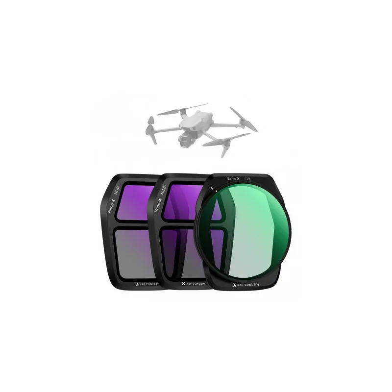 Upgrade your drone footage with the K&F Concept Filter Kit, which includes CPL, ND8, and ND16 filters for optimal exposure control and vivid image quality.