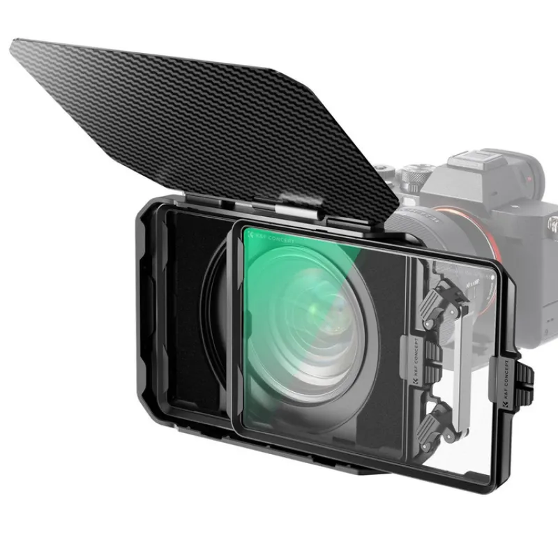 The K&F Matte Box Kit is a professional accessory for photographers and videographers, featuring a lightweight carbon fiber design that blocks stray light for clear, high-contrast images. Its ultra-thin 34mm profile prevents vignetting, even with wide-angle lenses as short as 16mm.