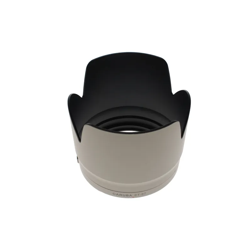 The Caruba ET-87 White Sun Hood is compatible for use with the Canon EF 70-200mm f/2.8L USM IS Type II objective. A sun hood protects your objective from undesired incoming light and limits effects such as color casting or lensflare. The sun hood also offers extra protection to your frontlens.
