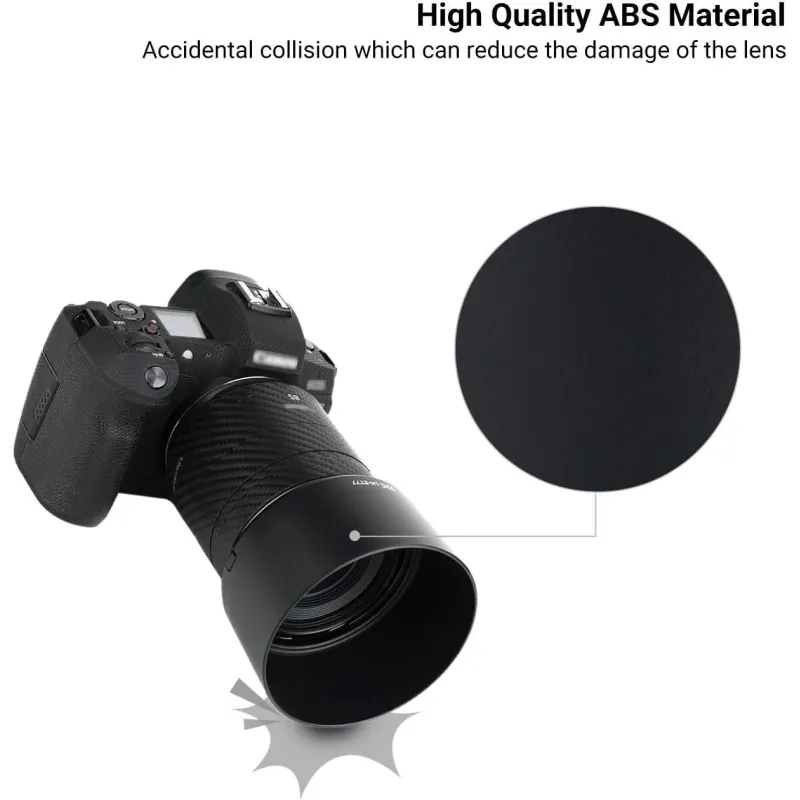 Specialiai sukurtas Canon RF S 55 210mm F5 7.1 IS STM objektyvui.Pakeičia canon ET 60B.Užkerta kelią nepageidaujamam šviesos patekimui.Matinis paviršius mažina flare.Puikiai tinka 55mm filtrams.