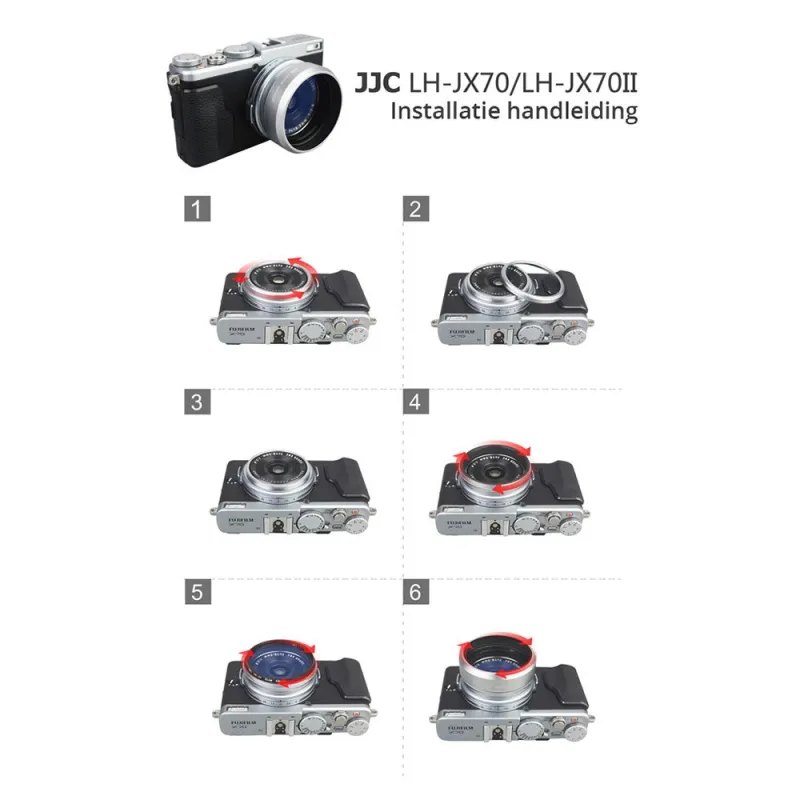 The JJC LH-JX70ii Fujifilm Sun hood is designed to use on the Fujifilm Finepix X70 Compact Camera . The lens hood shields the lens from unwanted incident light and minimizes the occurrence of a color cast or a lens flare. The sun canopy also offers extra protection to the lens of your camera. The supplied adapter ring makes it possible to use 49mm filters on your camera.