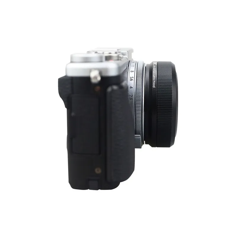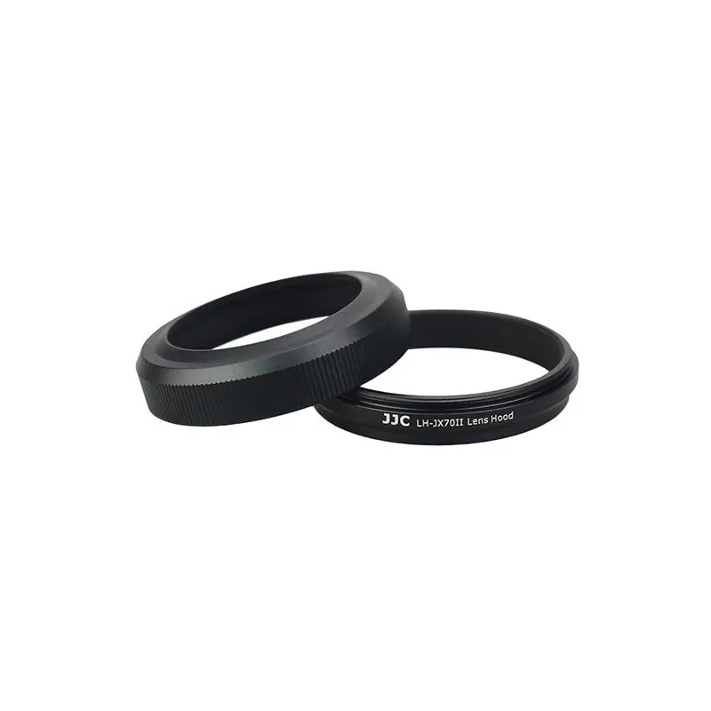 The JJC LH-JX70ii Fujifilm Sun hood is designed for the FujiFilm Verepix X70 Compact Camera. The lens hood shields the lens from unwanted incident light and minimizes the occurrence of a color cast or a lens flare. The sun canopy also offers extra protection to the lens of your camera. The supplied adapterring makes it possible to use 49mm filters on your camera.