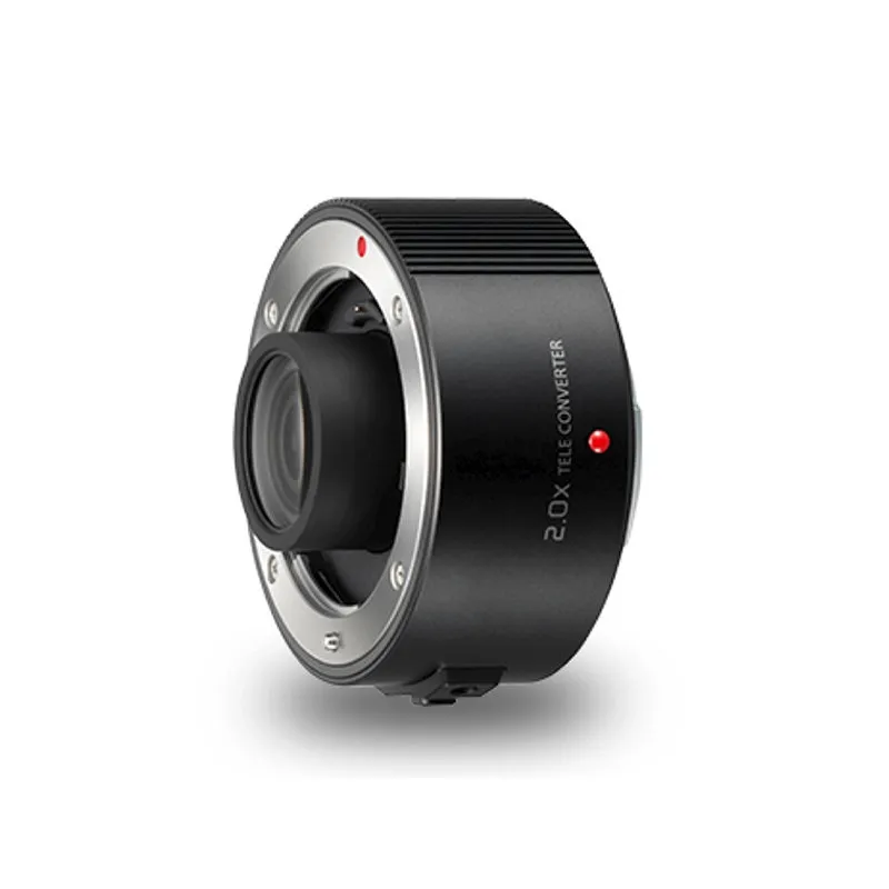 Telekonverteren Panasonic DMW-TC20. Forlænger brændvidden med 2x og er beregnet til at blive brugt med teleobjektiver med Micro Four Thirds-fatning, for eksempel Panasonic Leica DG Elmarit 200mm f/2.8 Power O.I.S.